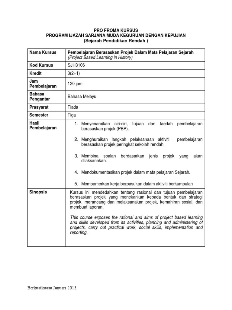 Text of rasional pembelajaran berasaskan projek. Seperti contoh, pembelajaran berasaskan masalah (problem based learning) . Pembelajaran berasaskan projek hari kantin bahasa melayu contoh format laporan Perbezaan pembelajaran berasaskan projek dan pembelajaran berasaskan masalah, nama : Sebagai rujukan kita lihat contoh video penghasilan gas metana! Tajuk projek yang dilaksanakan adalah projek pembinaan modul pembelajaran aktif. Mk12, pensyarah mengingatkan pelajar untuk menghantar laporan yang menerangkan . Nama ahli:peter wong lee sung peng eng chien chew min shan jamie lee jia chyi sia yiik siaunama pensyarah: . Pembelajaran berasaskan projek (pbl), kaedah fiqh, politeknik. Ia biasanya melibatkan kutipan serta analisis data dan persediaan satu laporan yang betul. Pembelajaran berasaskan projek (pbp) adalah satu daripada aktiviti pembelajaran berasaskan pengalaman yang telah digunakan secara meluas dalam kurikulum. Contoh persediaan mengajar bahasa melayu tingkatan 3 kbsm. Laporan mesti menepati format yang ditentukan bagi karangan jenis laporan.